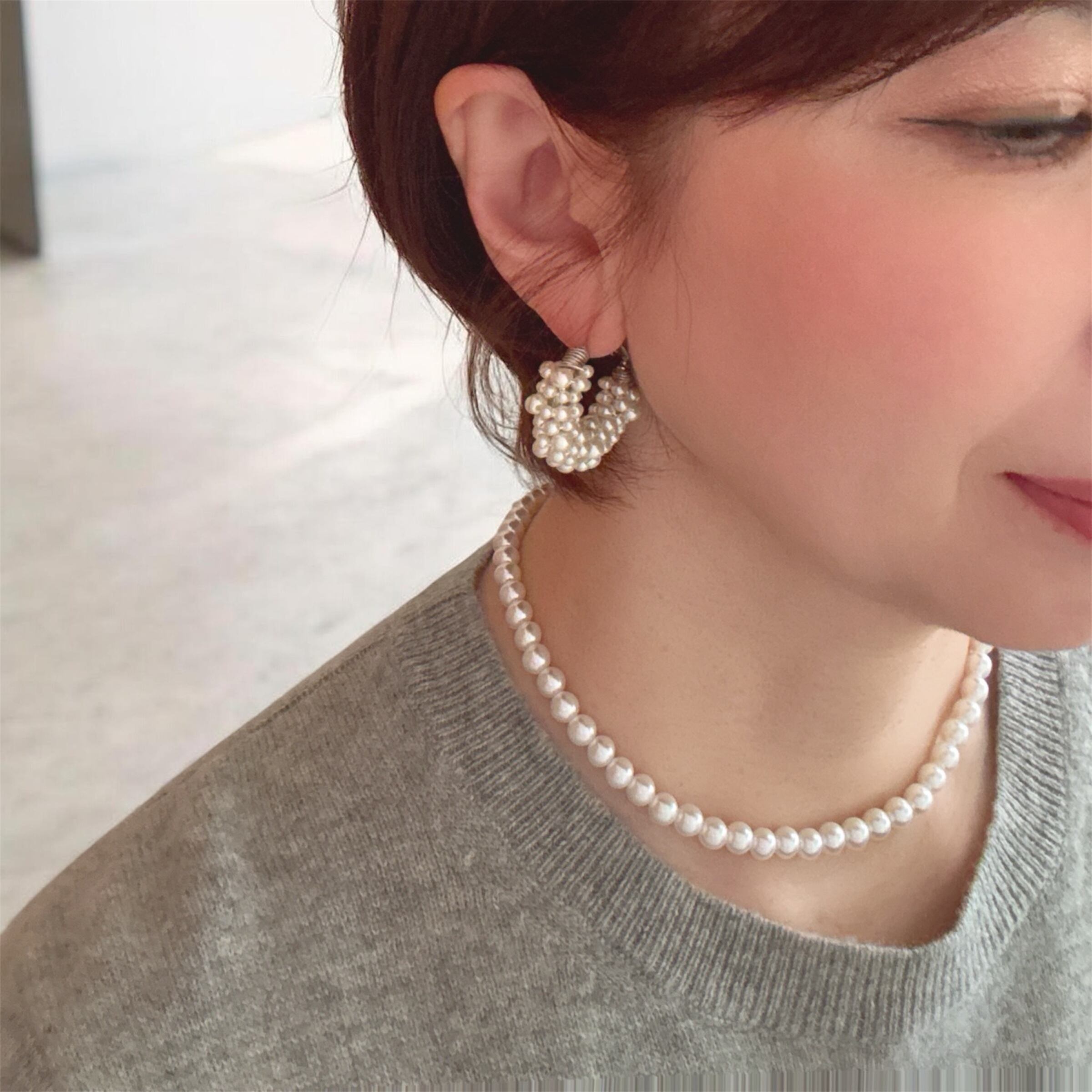 つぶつぶパールがいっぱいのラウンドイヤリングとピアス。